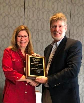 SE Region Past President Eric Bostwick presenting the Distinguished Service Award to SE Region President Charlene Parnall Spiceland